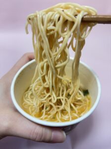 麺はファミマルと同じくフライ麺で、セブンイレブンよりは少し太い。歯切れがよく、スープがどっしりしていてもどんどん食べ進めることができます!