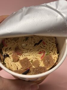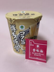 豚骨ラーメンといえば博多ラーメンをイメージするけど、黒マー油のとんこつということは熊本ラーメンをイメージした商品なのでしょう!ただ、熊本ラーメンと思って食べるとノンフライ麺ゆえにちょっと物足りなさがあるかもしれません。